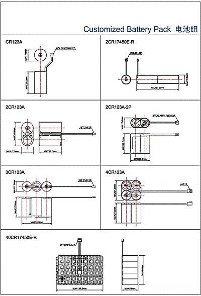 锂一次电池的标称电压有1.5V级和3.0V级两种。锂一次电池有扣式、卷式圆柱形和矩形等多种结构。锂一次电池具有比能量高、寿命长、耐漏液等优点。锂电池的结构形式常见的有圆柱碳包式、方型叠片式、圆柱叠片式、圆柱卷绕式、方型卷绕式等。
